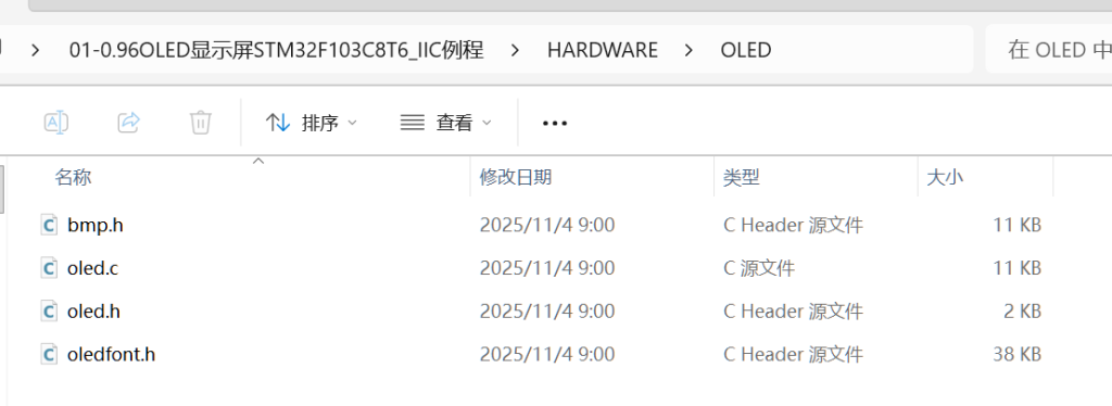 在获取的资料文件中,打开硬件资料,这些就是oled驱动文件。