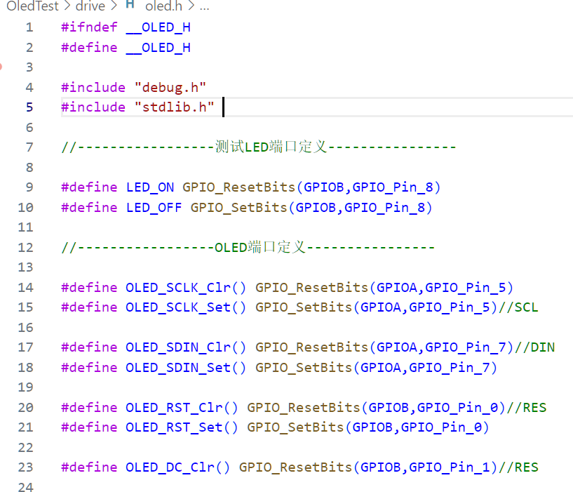 oled.h这里需要改的是引用的“debug.h”,原来是“sys.h”。还有关于SCL,SDA的定义,需要什么口就用什么口(软件I2C的优势)。